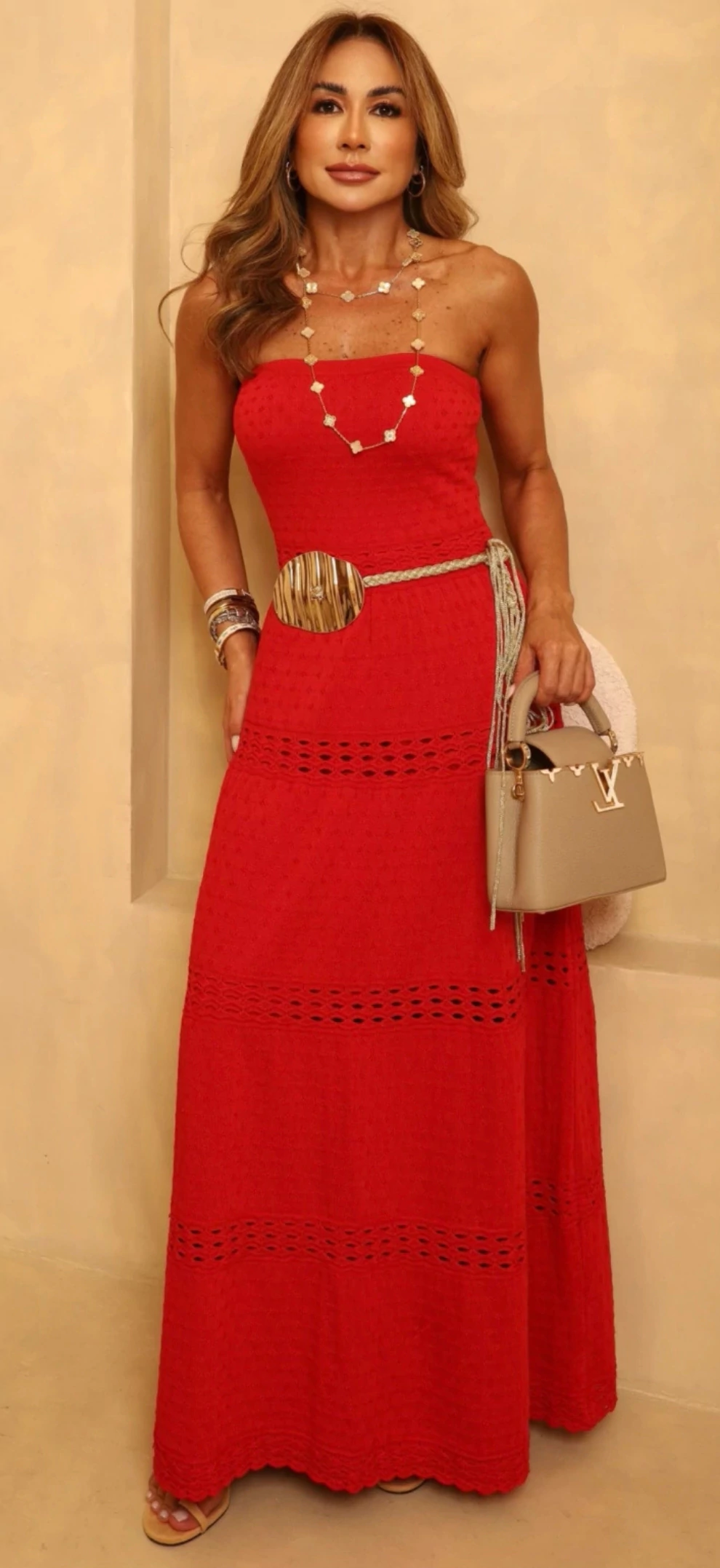 Combine com acessórios dourados para realçar ainda mais o visual.