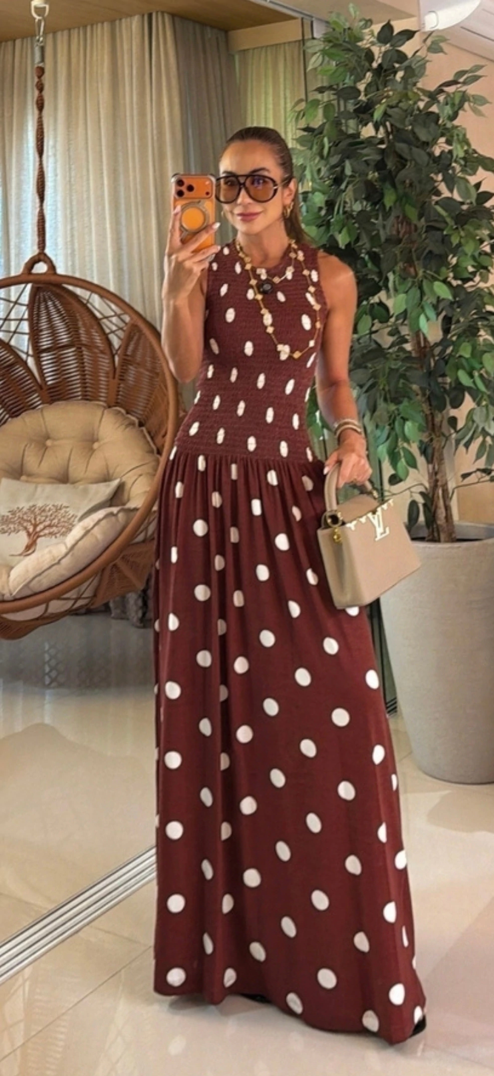 Um vestido sofisticado e atemporal, ideal para ocasiões especiais ou para quem deseja se destacar com elegância e estilo no dia a dia.